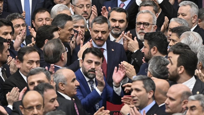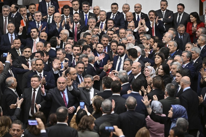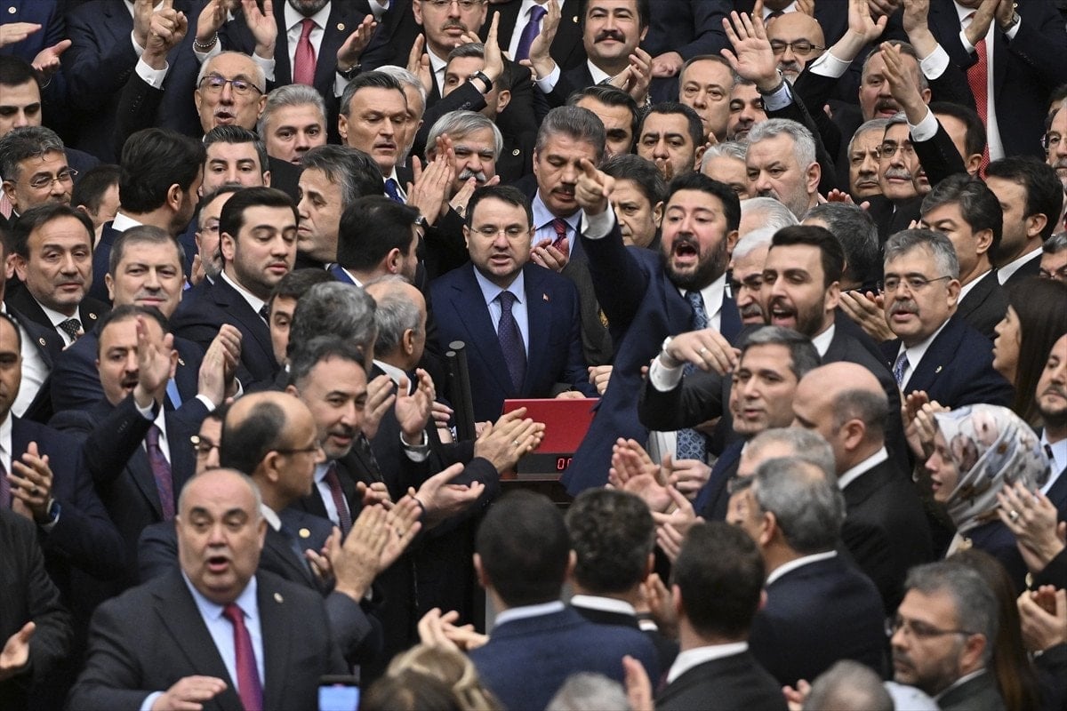 Daha sonra AK Partili vekiller bakanların yemin edebilmesi için kürsünün etrafını sardı.