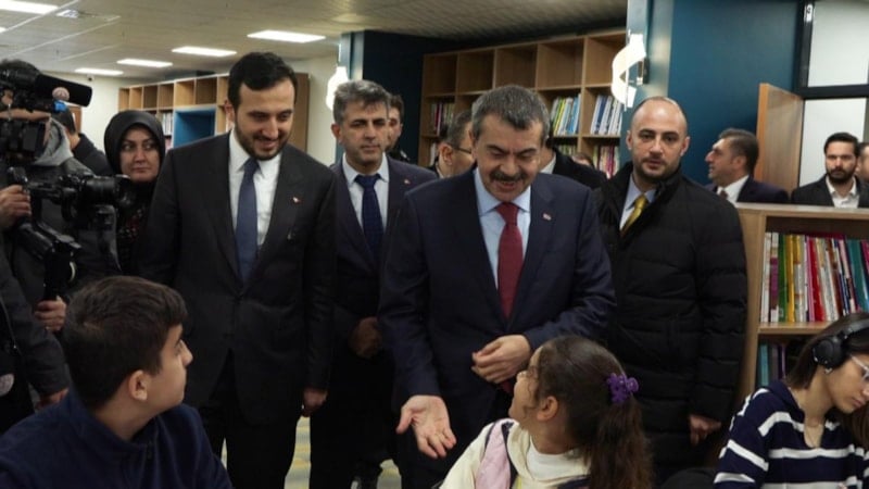 Konuşmasının ardından açılış kurdelesini kesen Bakan Tekin, ardından kütüphaneyi gezip incelemelerde bulundu.