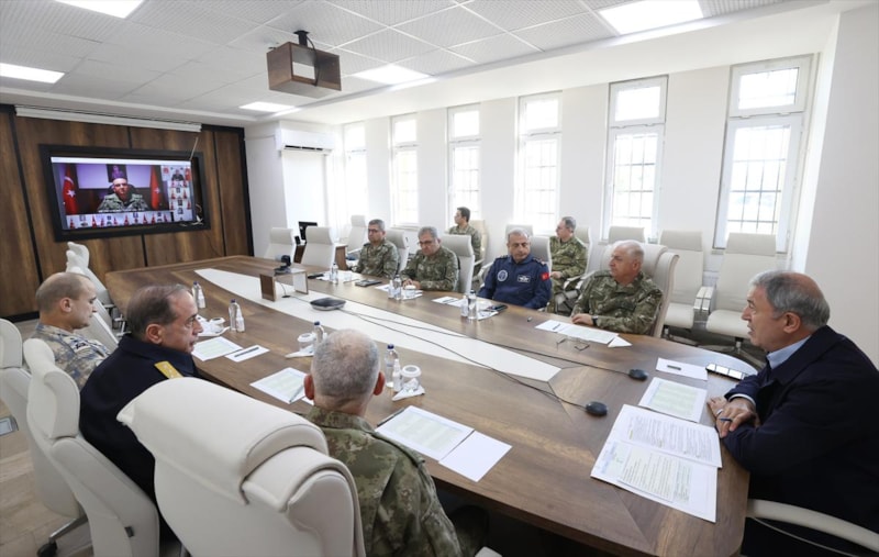 Akar başkanlığında, TSK komuta kademesi ile Irak ve Suriye'nin kuzeyindekilerin yanı sıra sınır hattında görevli birlik komutanlarının katıldığı video telekonferans toplantısı düzenlendi.