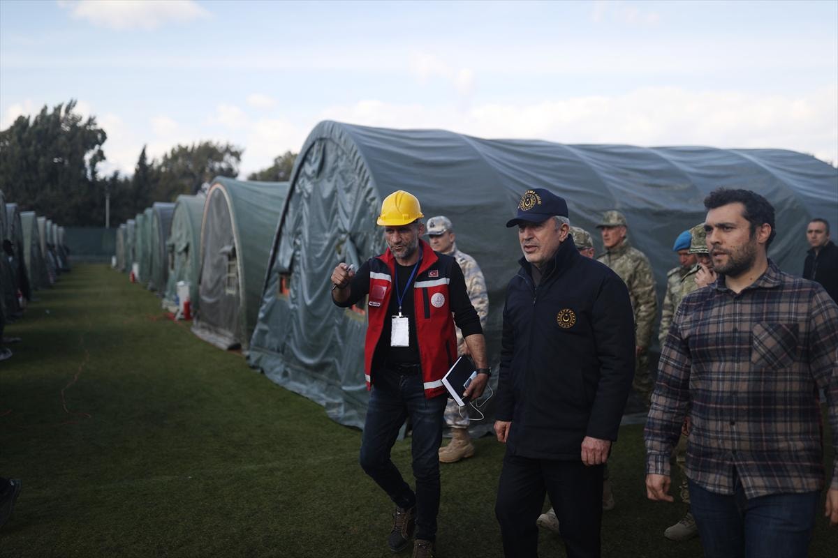 Daha sonra Akar, beraberinde Genelkurmay Başkanı Orgeneral Güler ile Mehmetçik tarafından Atakaş Hatayspor Tesisleri'nde kurulan çadır kenti ziyaret etti.