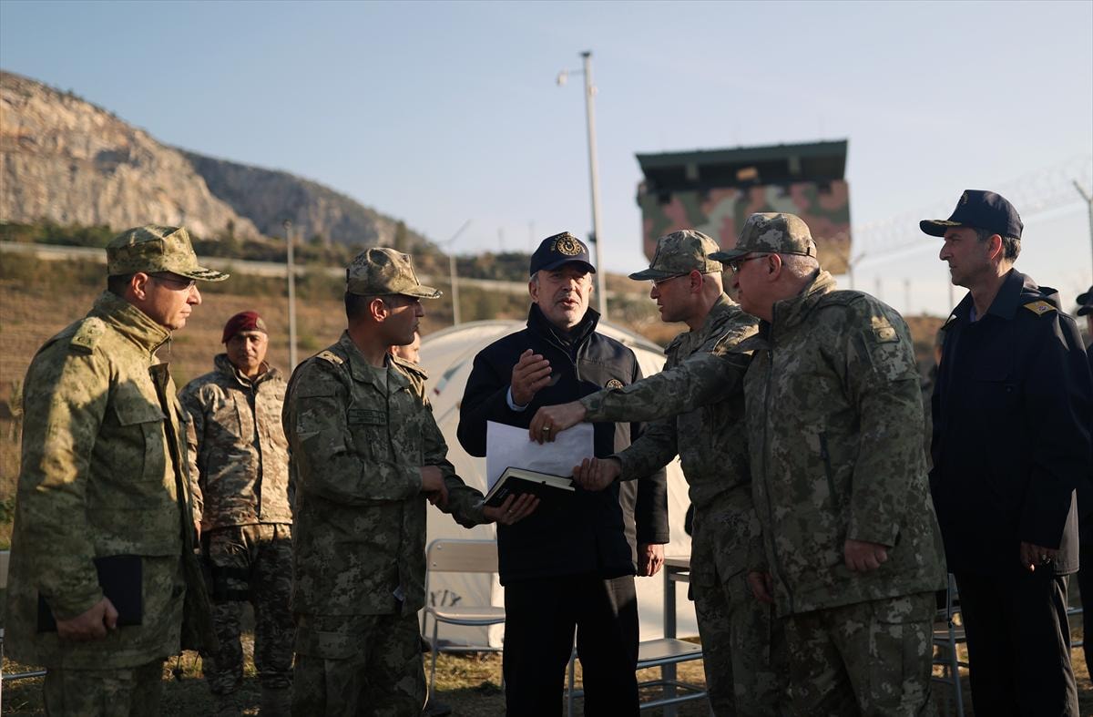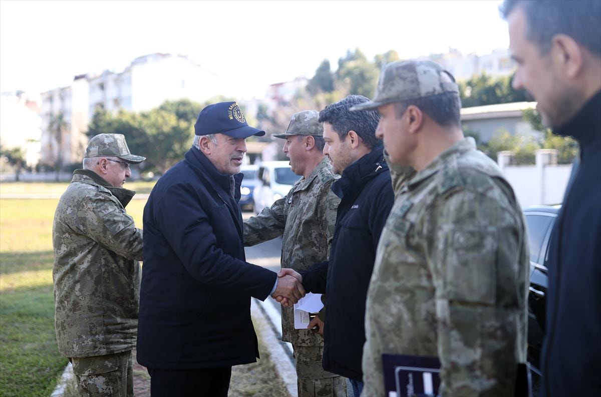 Milli Savunma Bakanı Hulusi Akar, daha sonra beraberindeki Orgeneral Güler ile İskenderun ilçesine geçerek Mehmetçik'in buradaki çalışmalarını yerinde denetledi.