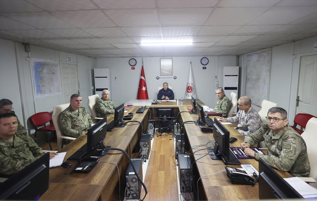 Hulusi Akar, Reyhanlı’daki 4’üncü Hudut Tabur Komutanlığında inceleme ve denetlemeye müteakip Akar’ın başkanlığında sınır hattı ve ötesindeki birliklerin komutanlarının katılımıyla video tele konferans toplantısı gerçekleştirildi.