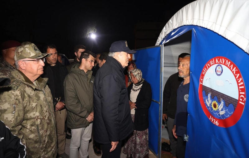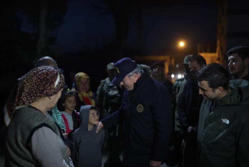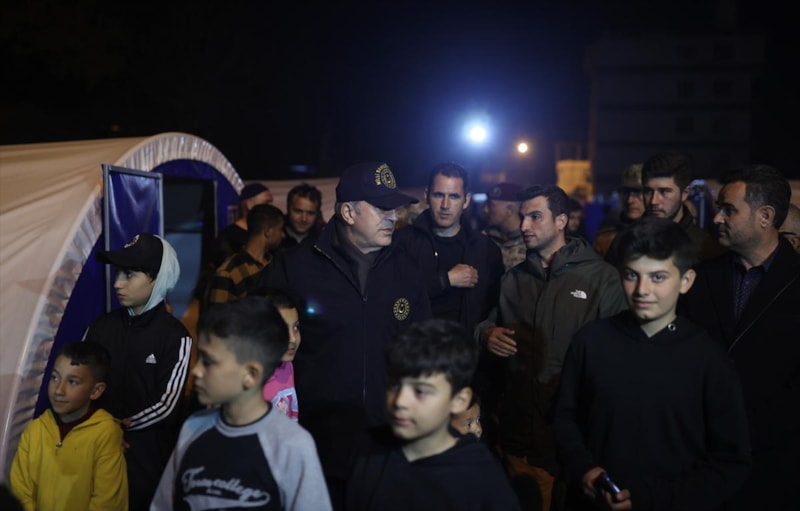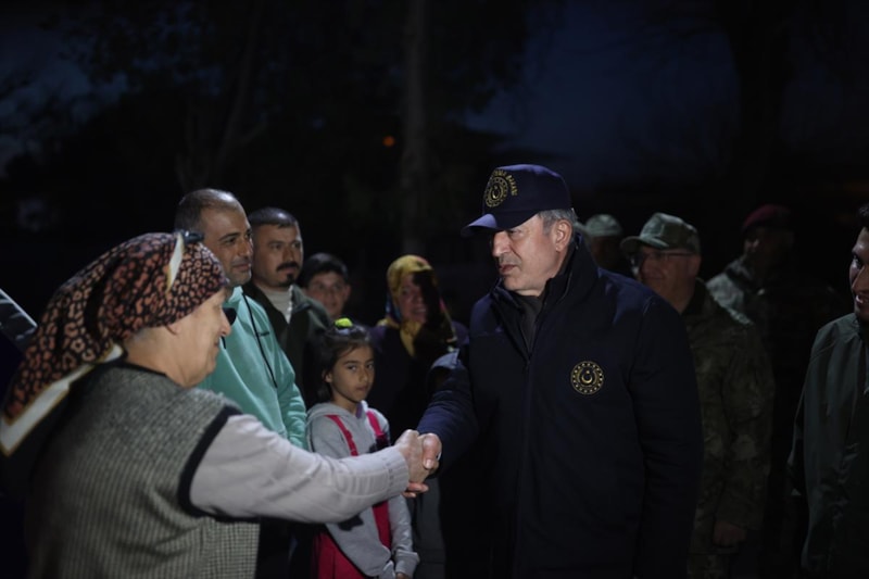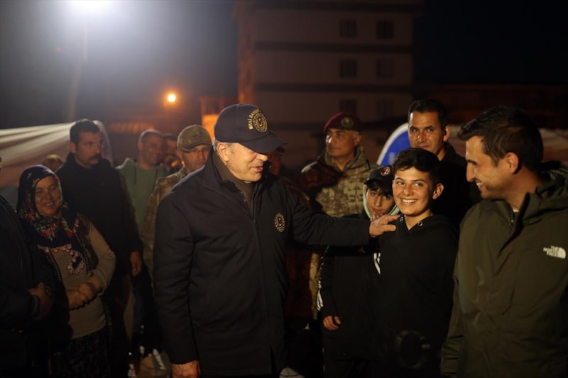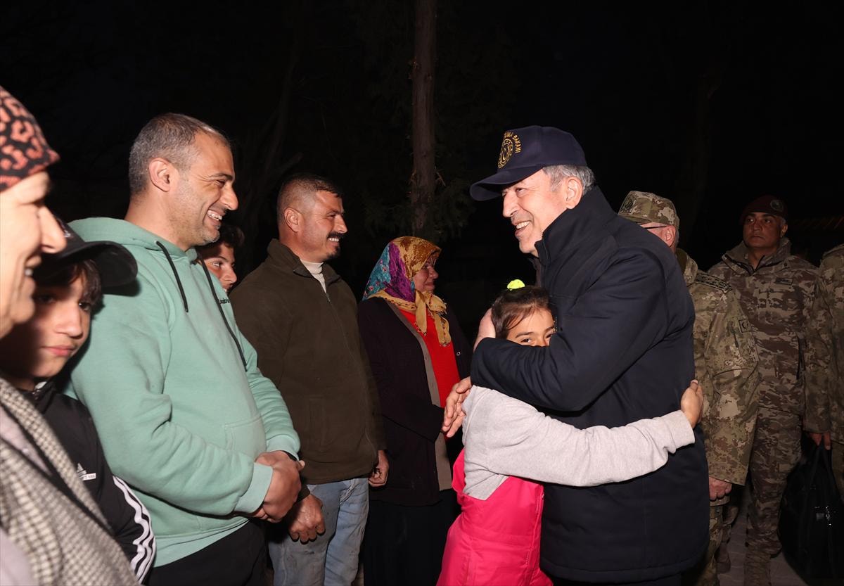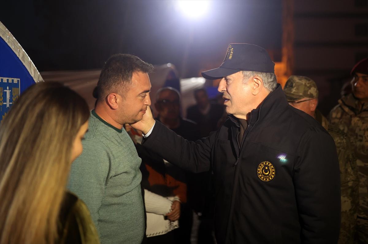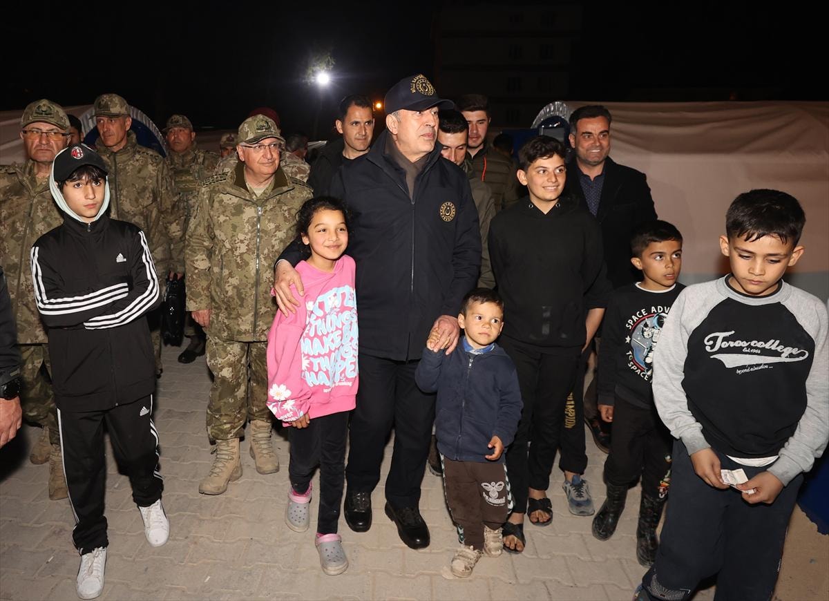 Akar, beraberindeki Genelkurmay Başkanı Orgeneral Güler ile çadır kentteki depremzedeleri ziyaret etti, taleplerini dinledi. Çocuklarla yakından ilgilenen Akar’a vatandaşlar, “asrın felaketi” olarak nitelendirilen depremlerin ardından sağlanan imkanlar için teşekkür etti, “Deprem gecesinden beri bizlerle devamlı ilgileniliyor, ihtiyaçlarımız karşılanıyor. Devletimizden Allah razı olsun. Biz sizlerden razıyız. Bu ülke hepimizin ülkesi inşallah birlik beraberlik içinde bu günleri atlatacağımıza inanıyorum. Allah bir daha bugünleri göstermesin.” ifadelerini kullandı.