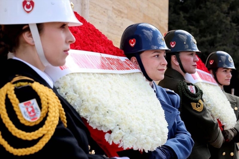 Aslanlı Yol'dan başlayan yürüyüşte tören birliğinin kadın askerlerden oluştuğu törende, Demet Güler, Atatürk'ün mozolesine çelenk bıraktı.