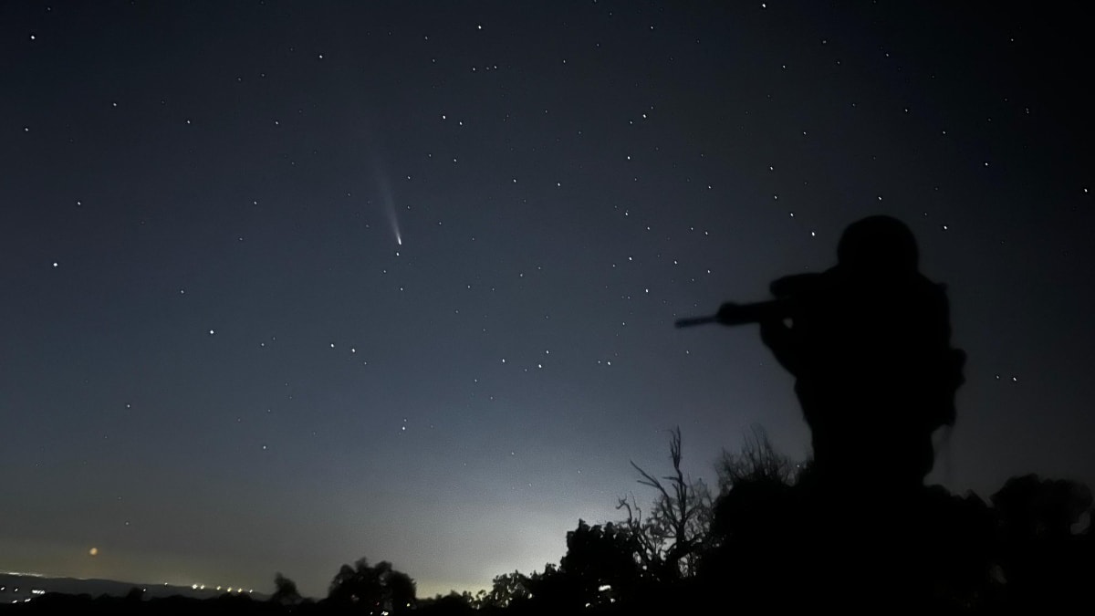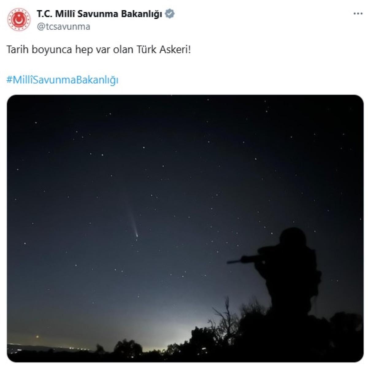Gecenin ayazında, yıldızlı gökyüzü altında ve bir kuyruklu yıldız kayarken, elinde silahı ile nöbet tutan Mehmetçik'in yer aldığı fotoğraf, şu ifadelerle paylaşıldı: