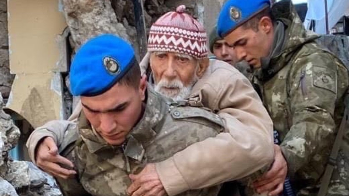 Bir erin sırtında yaşlı bir adamı taşıdığı ana ilişkin fotoğraf karesi, “Türkiye tek yürek” notuyla resmi hesaptan yayınlandı.