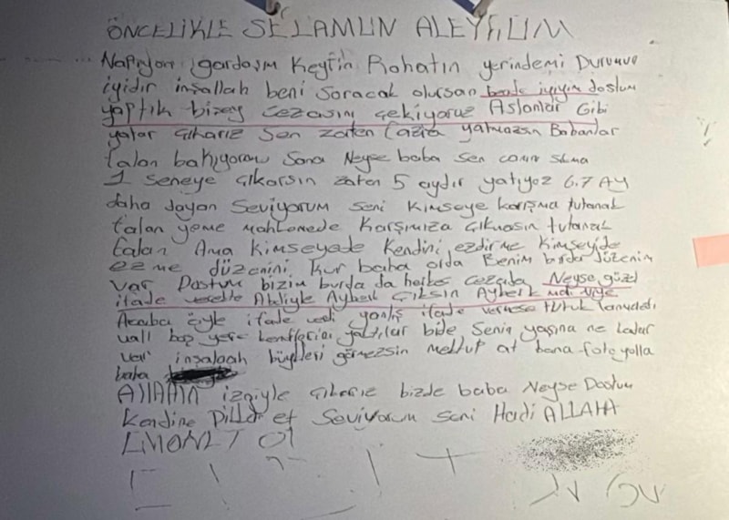 Bu süreçte, sanıklardan B.B.'nin diğer tutuklu sanık U.B.'ye yazdığı mektup ortaya çıktı.