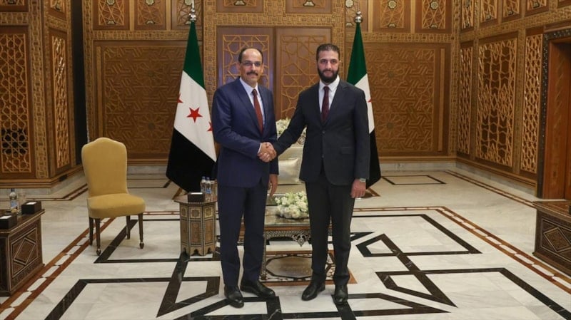 Burada Suriye Cumhurbaşkanı Ahmed Şara ile bir araya gelen Kalın, ikili ve bölgesel güvenlik meselelerini ele aldı.
