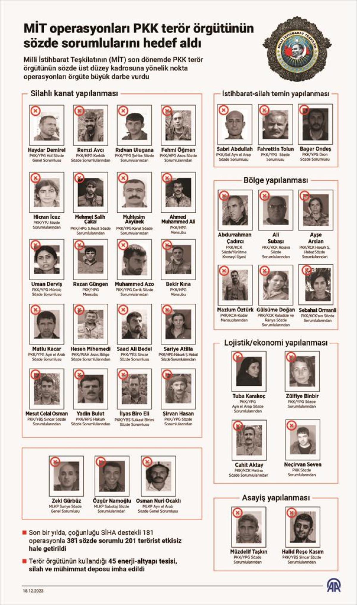 MİT'in etkisiz hale getirdiği, terör örgütü PKK/KCK'nın sözde Sincar sorumlusu Ceko Pir kod adlı Saad Ali Bedel için Irak'ın kuzeyindeki Sincar'da mart ayında, metropollerde eylem talimatı veren terör örgütü PKK/YPG'nin sözde istihbarat sorumlusu "Mazlum Karamok" kod adlı Sabri Abdullah için ise Suriye'nin kuzeyindeki Aynularab'da nisan ayında operasyon düzenlendi.