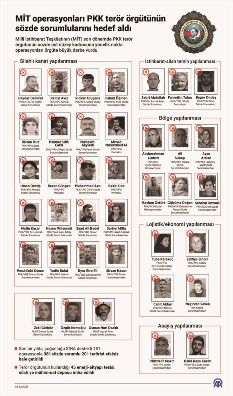 Güvenlik kaynaklarından edinilen bilgiye göre, Türkiye'nin terörle mücadelede izlediği "tehdidi sınır ötesinde bertaraf etme" stratejisi doğrultusunda, PKK'nın Suriye ve Irak'taki mensuplarını hedef alan operasyonları, yıl boyunca kesintisiz sürdü.