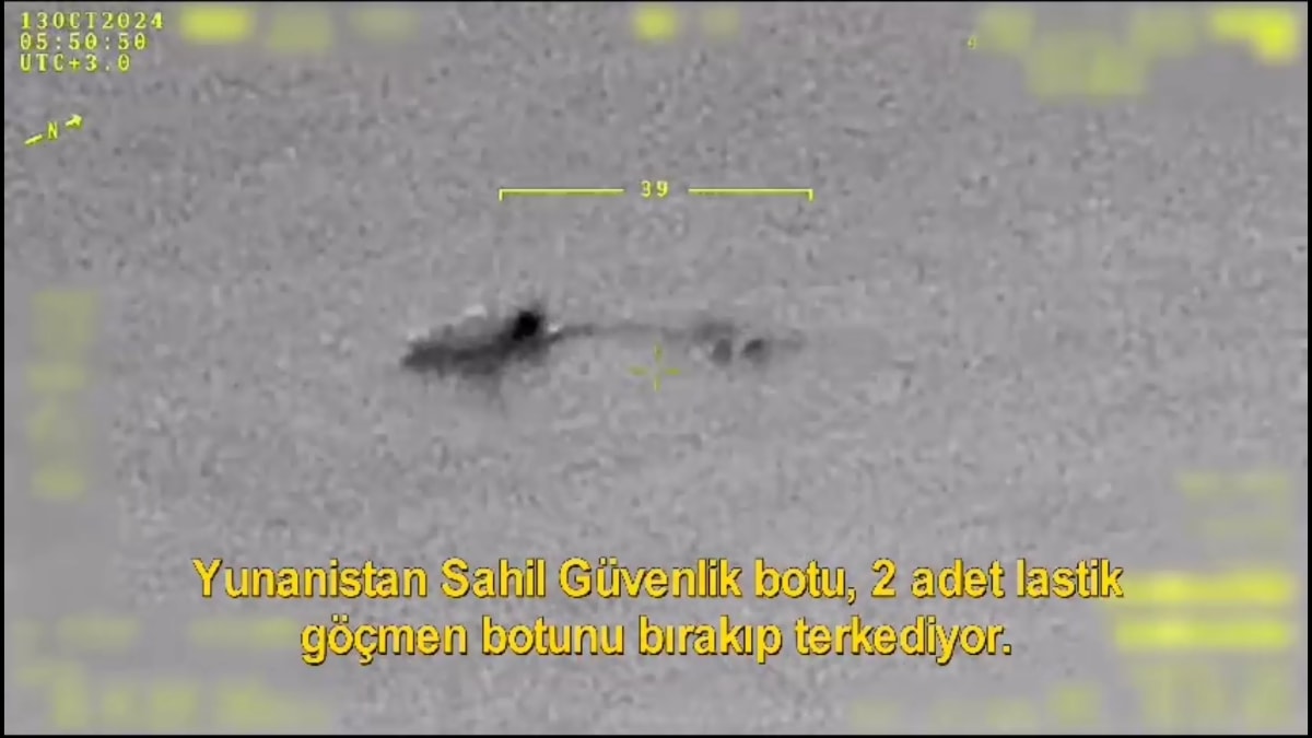 Deniz Kuvvetleri Komutanlığımıza ait İHA ile keşif ve gözetleme faaliyeti esnasında, Yunanistan'a ait Sahil Güvenlik botunun Rodos Adası'nın kuzeyinde, düzensiz göçmenleri taşıyan 2 adet bot bıraktığı görüntülendi.