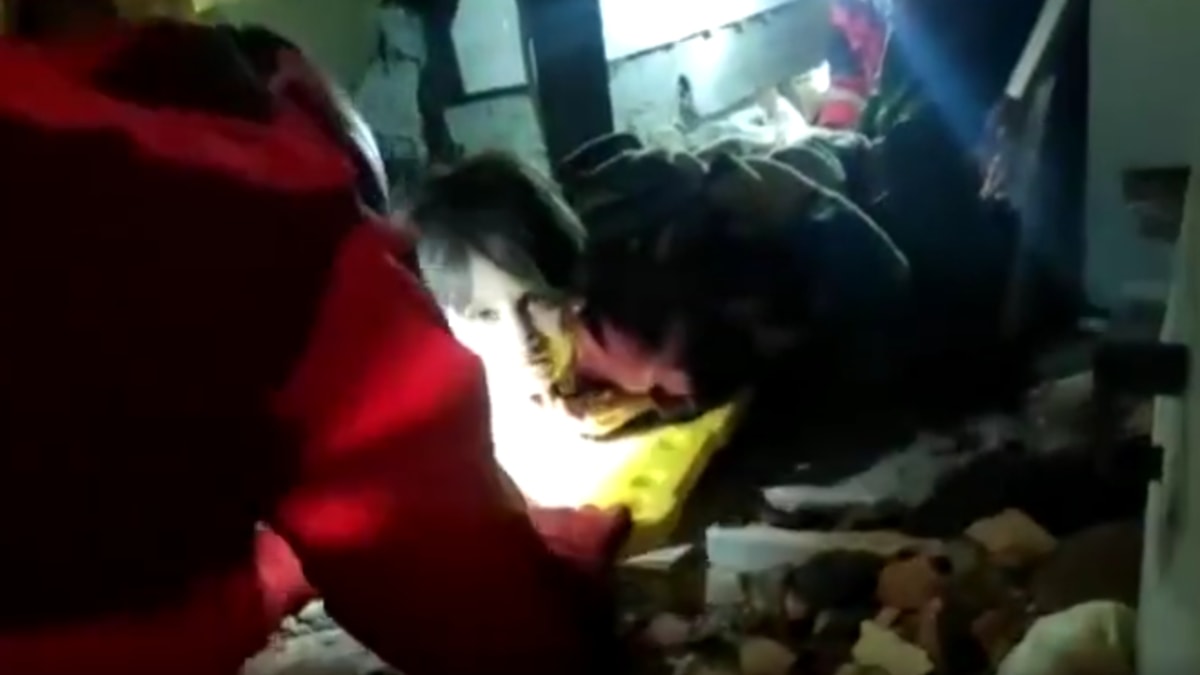 Milli Savunma Bakanlığı (MSB), kurtarma ekibinin küçük çocuğu sağ olarak yıkıntının arasından çıkardığı anları paylaştı.