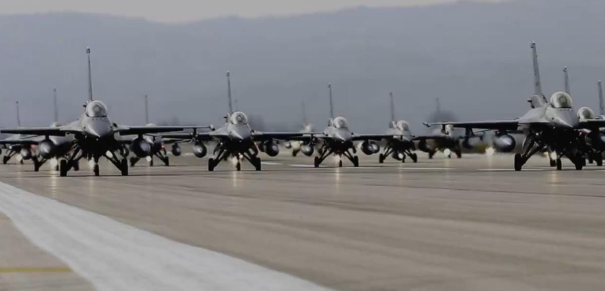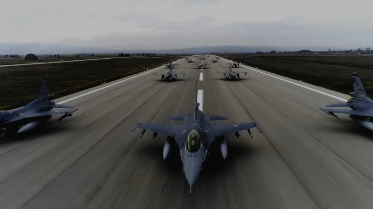 Milli Savunma Bakanlığı'nın sosyal medya hesabından "Daima hazır" notuyla paylaşılan videoda, fil yürüyüşü yapan F-16 savaş uçaklarının görüntülerine yer verildi.