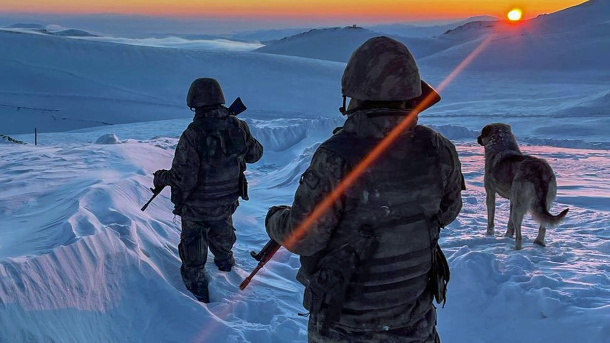 Bakanlık tarafından paylaşılan diğer karede ise kahraman askerlerimizin zorlu şartlar altında tuttuğu nöbete yer verildi.