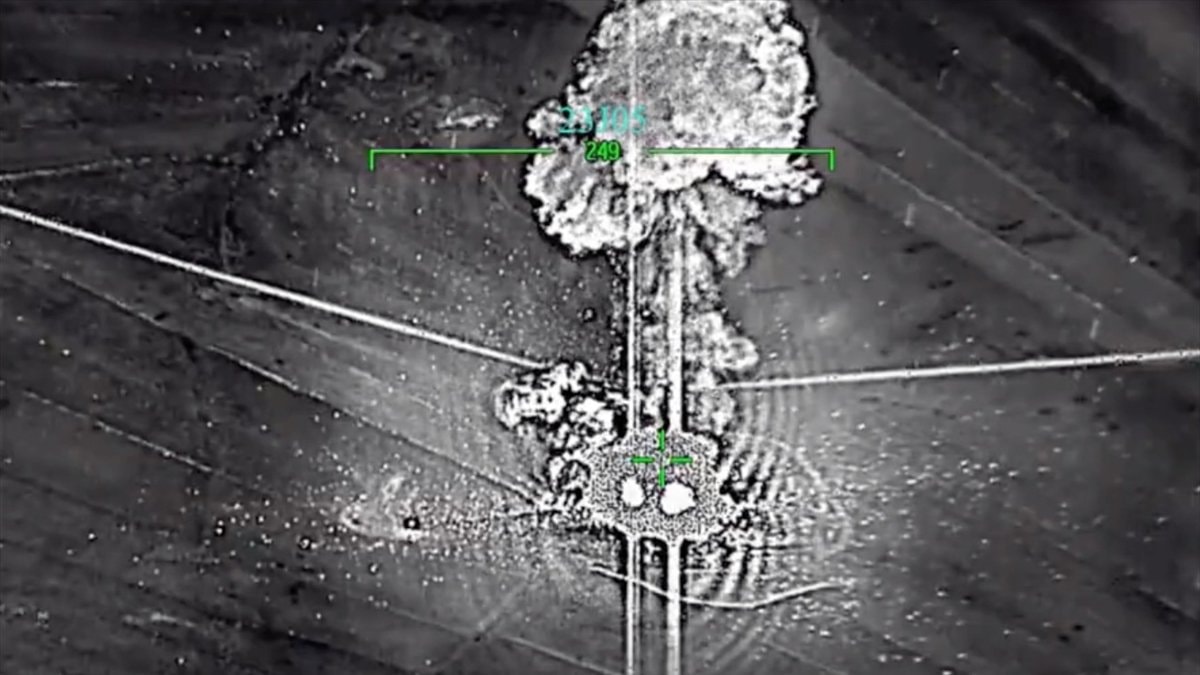 Bakanlık görüntüleri "Suriye'nin kuzeyindeki Tel Rıfat, Cizire ve Derik bölgelerindeki PKK/YPG’li teröristlere ait hedefler dün gece kahraman pilotlarımız tarafından işte böyle imha edildi." başlığıyla paylaştı.