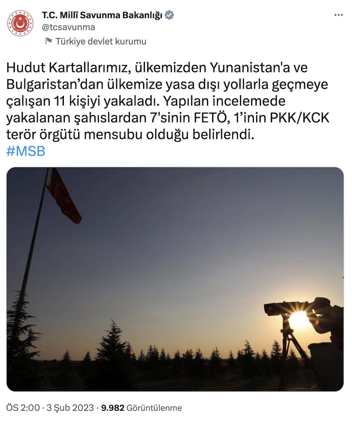 Milli Savunma Bakanlığı'nın sosyal medya hesabında şu ifadelere yere verildi: