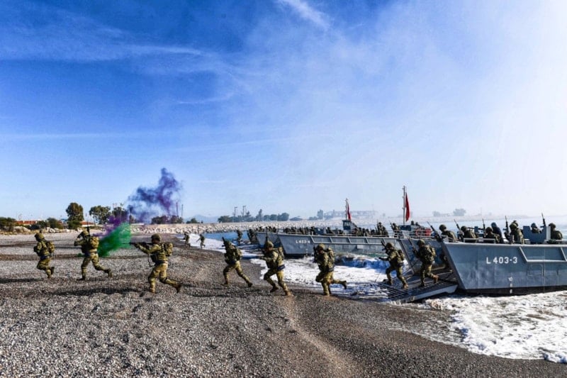 Milli Savunma Bakanlığı'ndan Mehmetçiğin tatbikatta denizden karaya çıkarma yaptığı anlara ait bir fotoğraf yayınlanırken paylaşımın ardından Cumhurbaşkanı Erdoğan'ın geçmişte Yunanistan'a yönelik sarf ettiği "Bir gece ansızın gelebiliriz" sözleri gündem oldu.