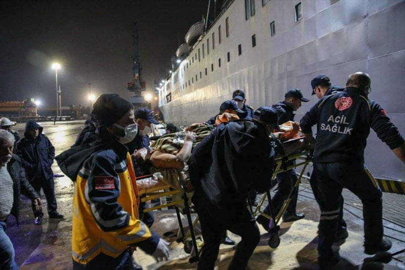 "Bölgedeki yaralılarımızın hastanelerdeki hasardan dolayı burada bakımlarının mümkün olmayacağını düşünerek bizim TCG İskenderun gemisini görevlendirmek suretiyle, bu gece İskenderun Limanı'na yanaşacak. Ve buradaki bütün yaralıların en kısa zamanda Mersin'deki daha donanımlı hastaneye sevkini mümkün kılacağız."
