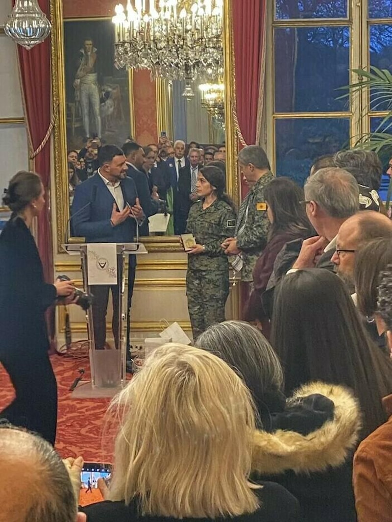 YPJ Sözcüsü terörist Ruksan Muhammed ile terör örgütü YPG Sözcüsü Nuri Mehmud'a senato tarafından bir de “Onur Madalyası” verildi.