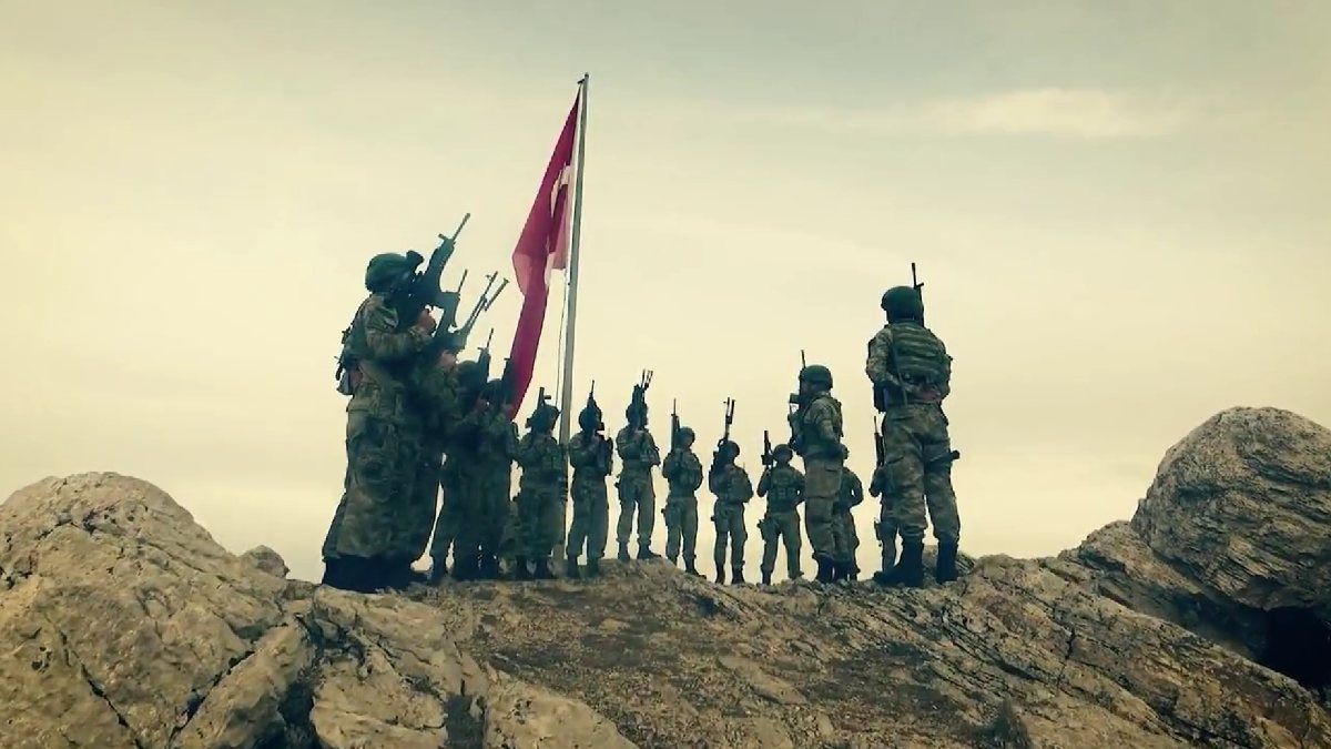 Farklı coğrafyalarda ülkesi için canlarını ortaya koyan askerler, ''Üstte mavi gök çökse, Altta yağız yer delinse, Can bedendeyse, Biz görevdeyiz!'' mesajıyla kararlılıklarını vurguladı.