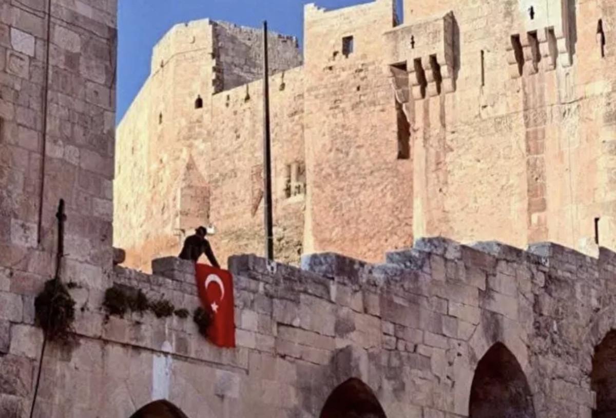 Yaklaşık 400 yıl Osmanlı himayesinde kalan şehrin en büyük simgelerinden Halep Kalesi'nde bugün Türk bayrağı dalgalandı.