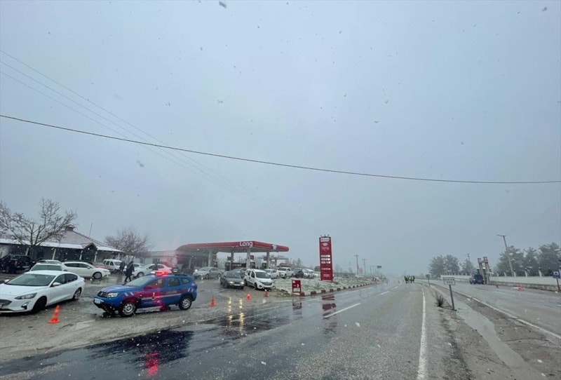 Yoğun kar yağışı nedeniyle Muğla-Denizli kara yolunda zincirleme trafik kazaları meydana geldi, çok sayıda araç yolda kaldı.