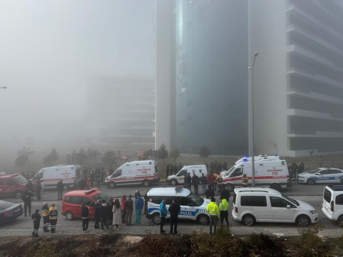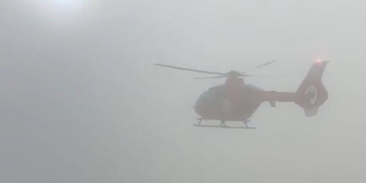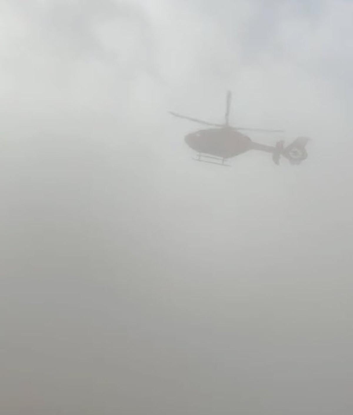 Görüntüde, sisli havada helikopterin kalkış yaptıktan sonra geriye doğru hareket ettiği, kuyruk bölümünden hastane binasına doğru yaklaştığı anlar yer aldı.