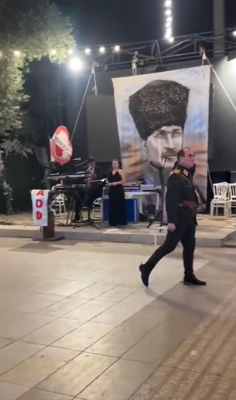 Milas'ta düğün sahipleri tarafından davet edilen bir kişi, Mustafa Kemal Atatürk rolü yaparak misafirlerin karşısına çıktı. Gençlik Marşı ile giriş yapan kişi alkışlarla karşılandı.