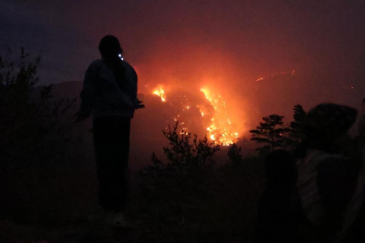 Yangını kontrol altına almaya çalışıyoruz. Yangın, çok geniş bir alanda. Yüksek bir rüzgar var. Bu da maalesef mücadeleyi zorlaştırıyor. Şu ana kadar iki hanede 11 vatandaşımızı tahliye ettik.