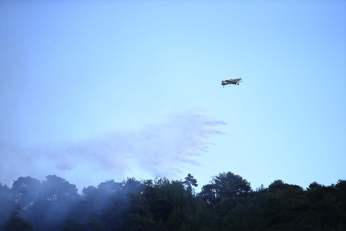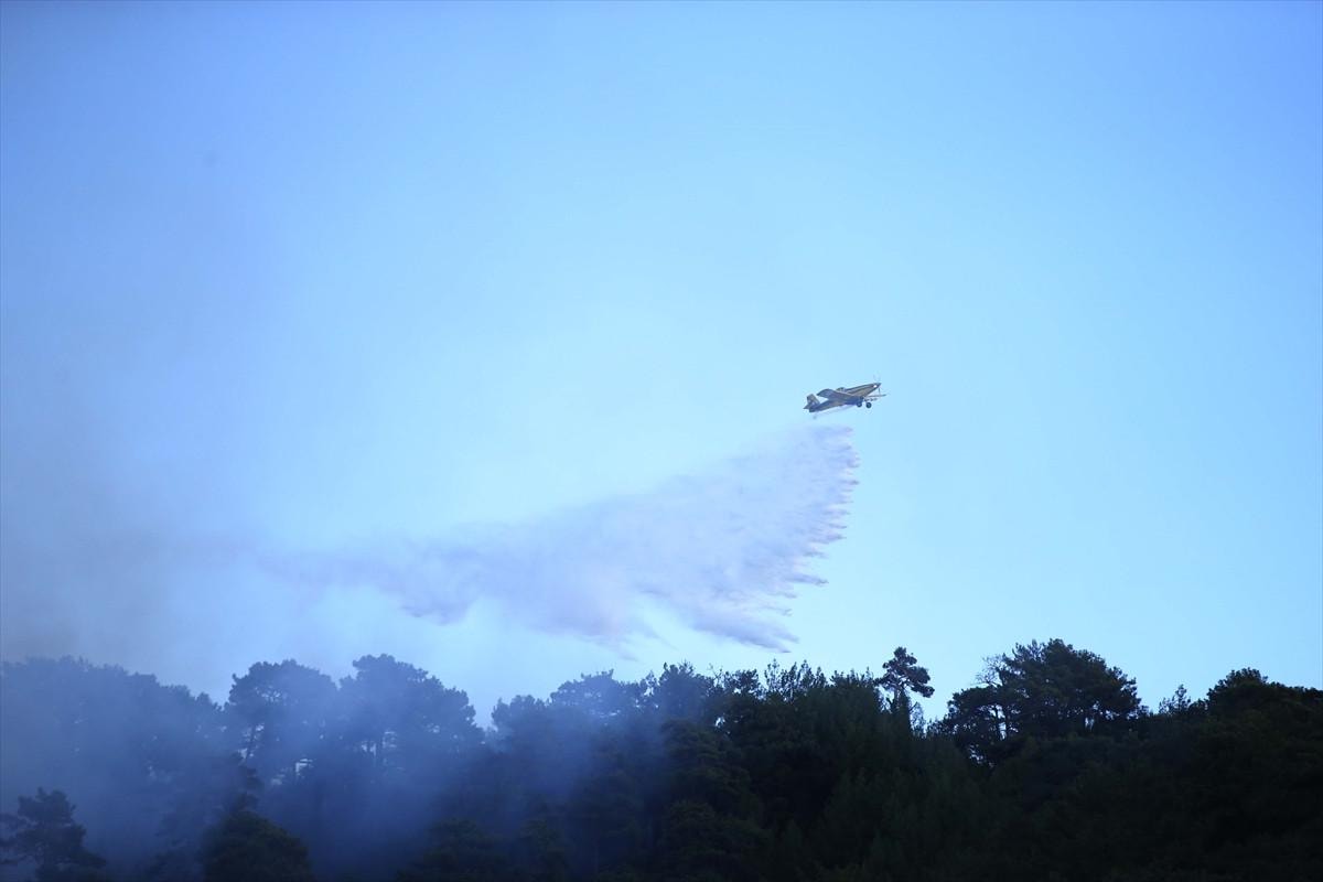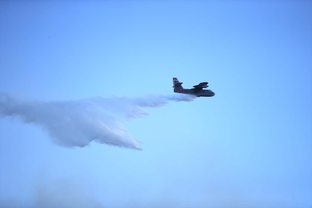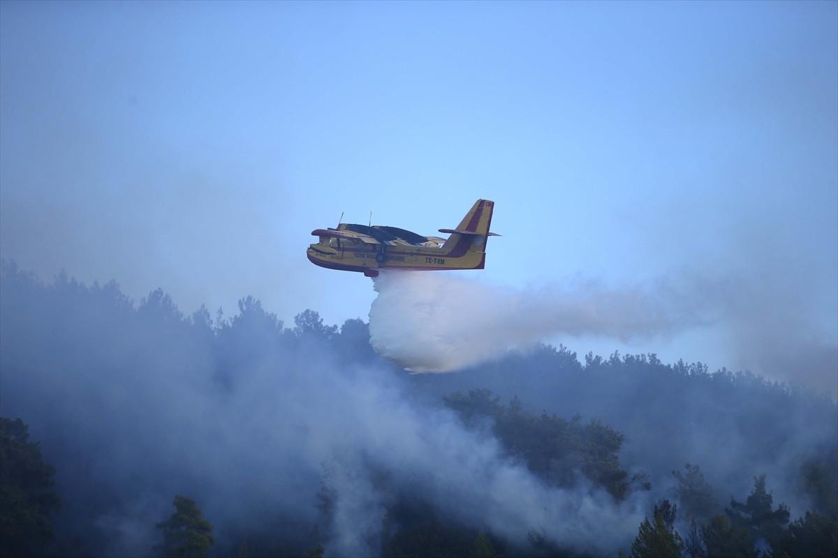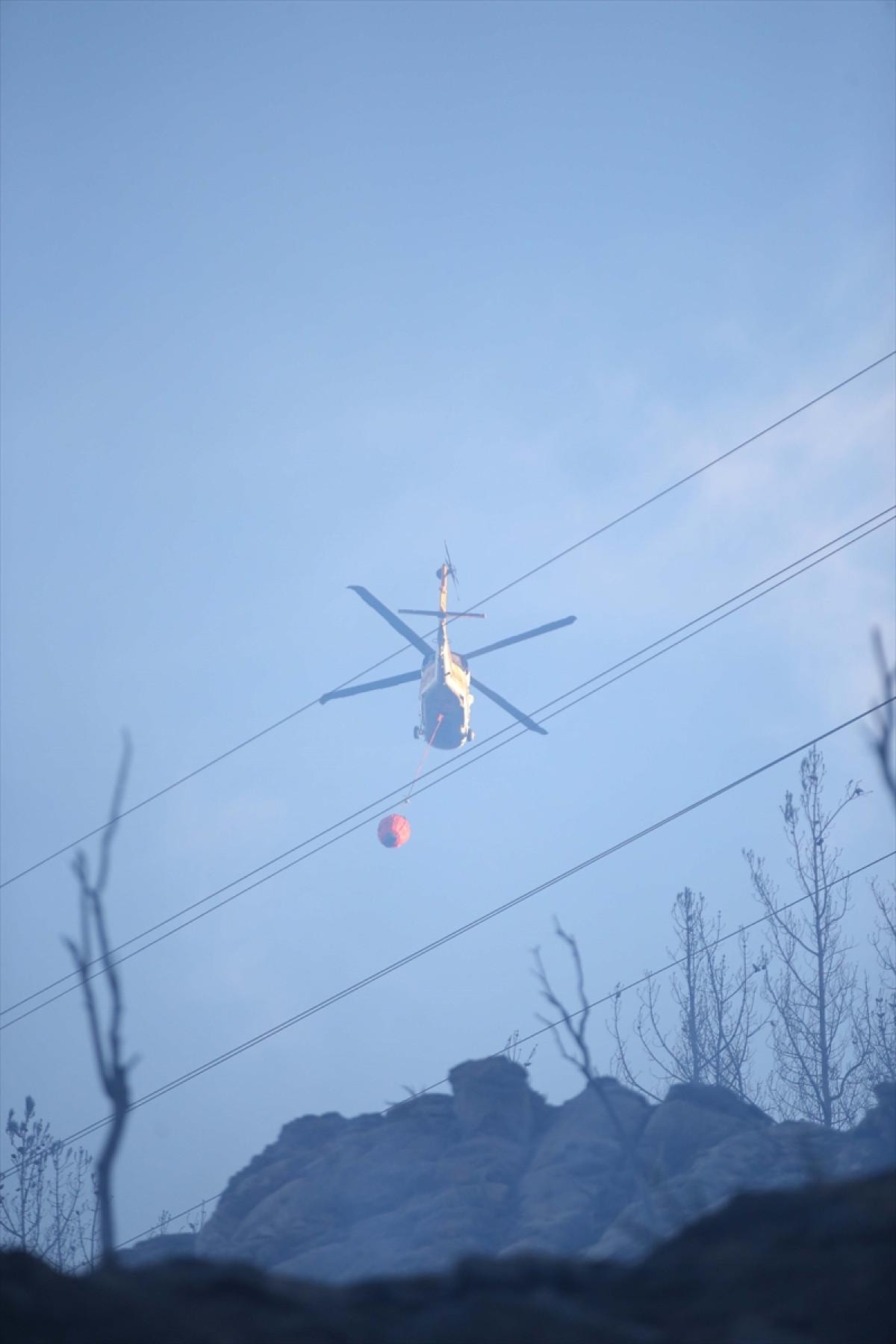 Sabahın ilk ışıklarıyla 5 uçak ve 4 helikopter, söndürme çalışmalarına katıldı.