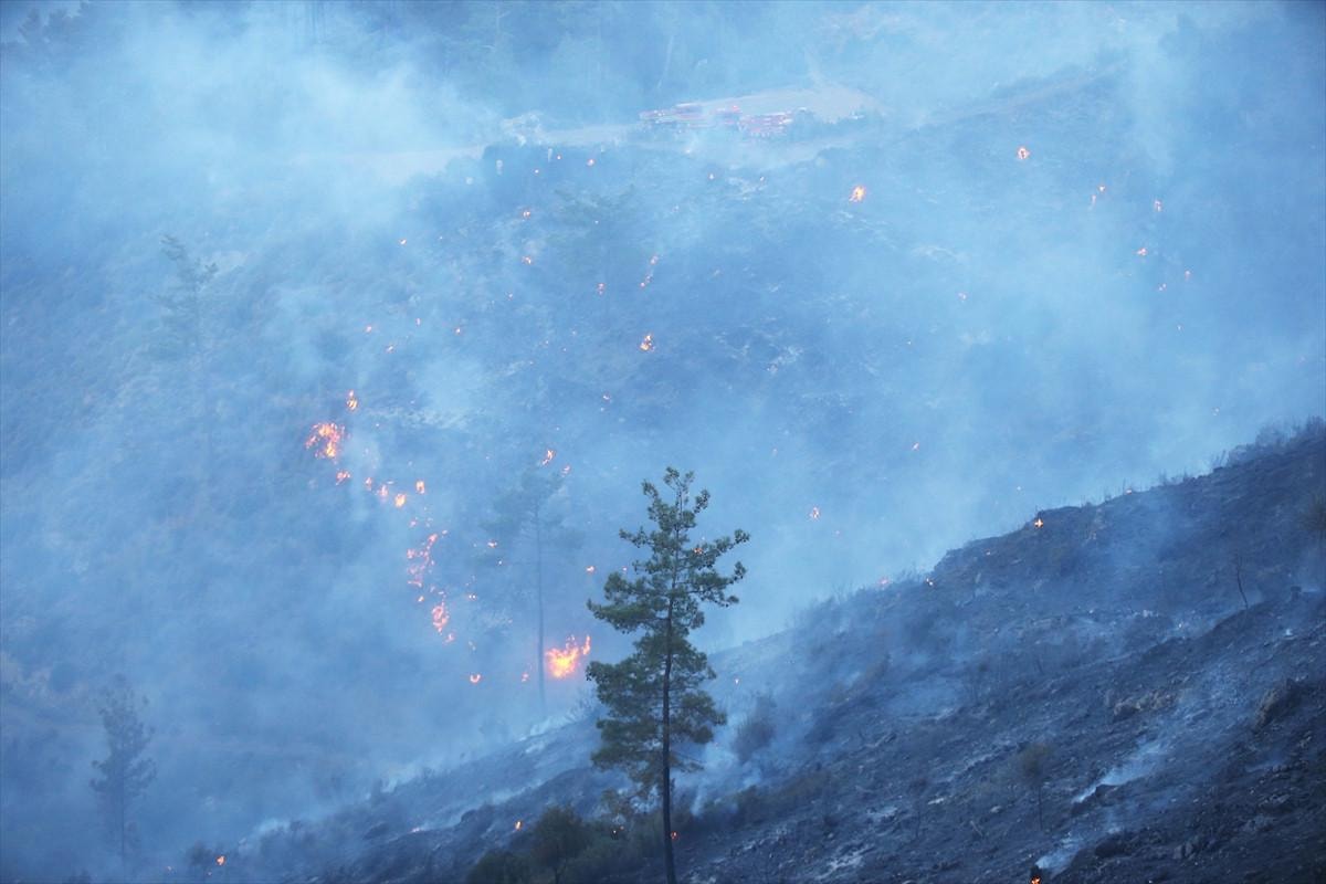 Zorlu arazi ve hava şartlarında ekipler alevlerle mücadele ediyor. Yangın bölgesinde 49 arazöz, 15 su ikmal aracı, 5 dozer ve 264 orman personeli görev yapıyor.