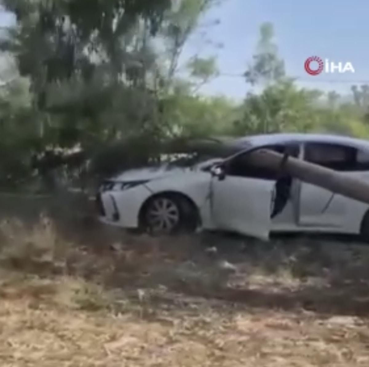Yoldan geçen diğer araçların güvenlik kameralarına yansıyan kazada, radar aracının devrilen ağacın altında kalma anları net şekilde görüldü.