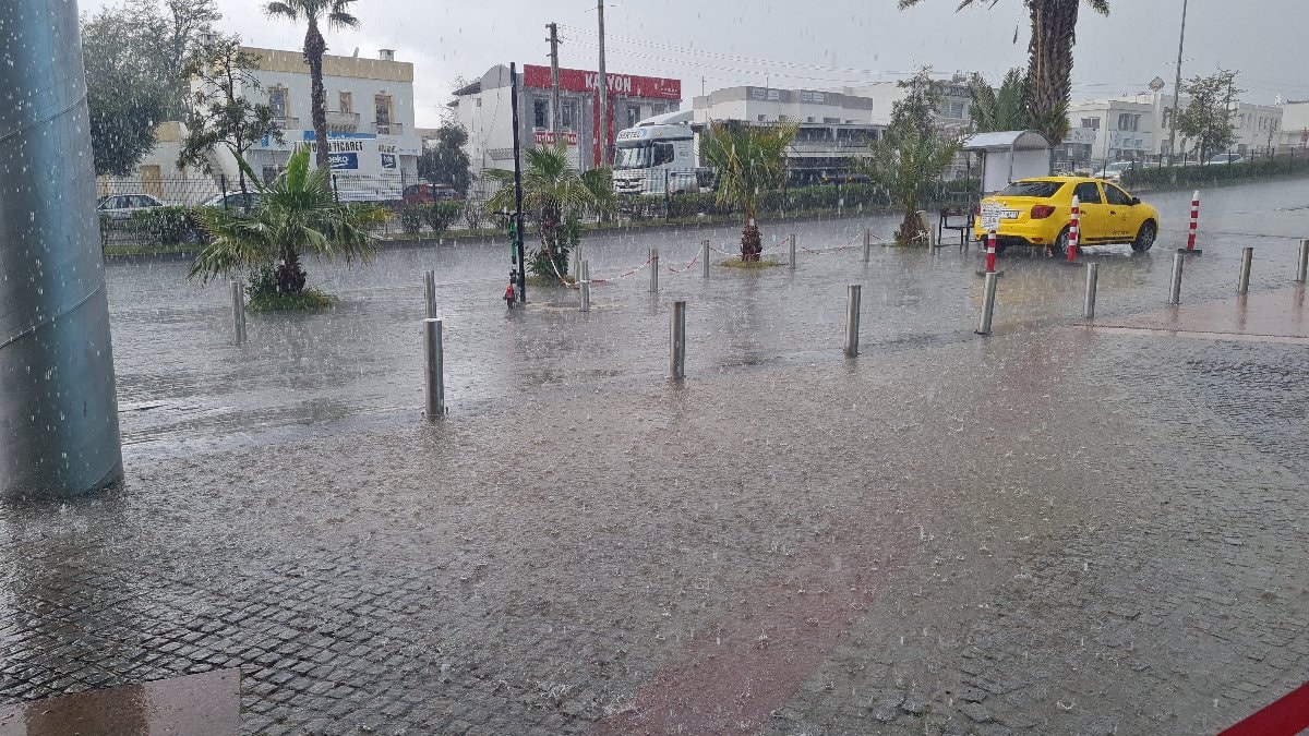 Meteoroloji Genel Müdürlüğü’nün sağanak yağış uyarısı yaptığı Muğla’nın Bodrum ilçesinde, öğle saatlerinde ani sağanak etkili oldu.
