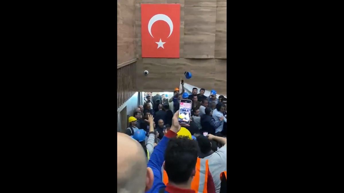 Salona gelen işçiler salonda sürekli slogan atmaya başladı.