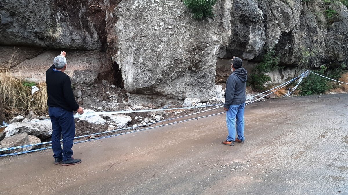 Heyelan nedeniyle tonlarca ağırlıktaki dev kaya parçası zeminden koparak yola düştü.