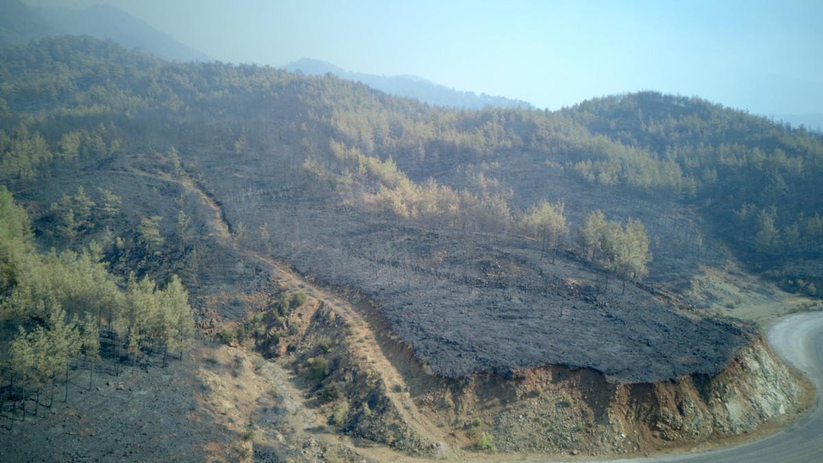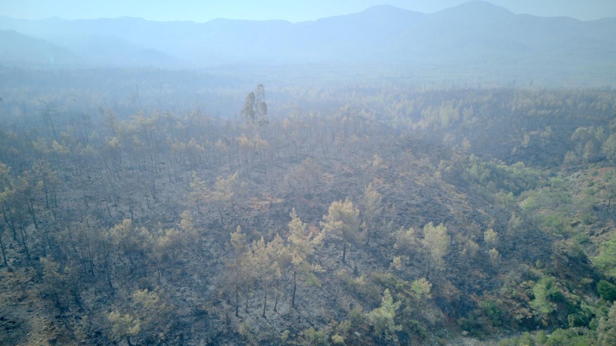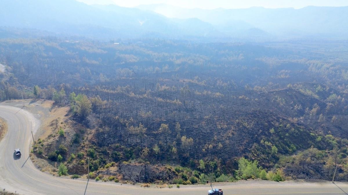 - Yüzlerce hektar alanın yanması ve ağaçların iskelet haline gelmesi, hasarın büyüklüğünü gözler önüne seriyor.