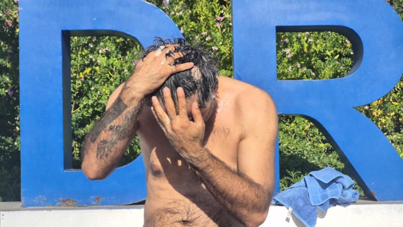 Yavuz, çevresindeki vatandaşların şaşkın bakışları arasında leğen içerisinde yanında getirdiği 5 litrelik su ile saçını köpükle yıkayıp duş aldı. Daha sonra havlu ile kurulanarak açıklama yaptı.