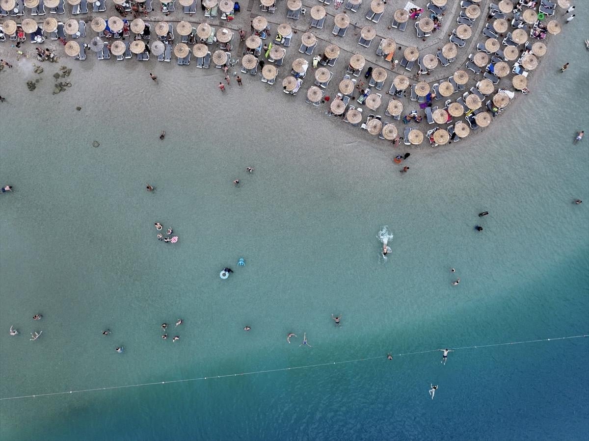Sıcaktan bunalan kent sakinleri ile yerli ve yabancı turistler, Ölüdeniz Mahallesi'ndeki Kumburnu ile Belcekız plajlarında yoğunluğa neden oldu.