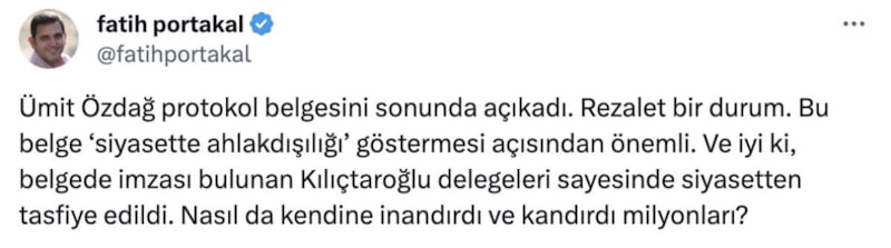 Siyasi partilerin yanı sıra açıklamada bulunan gazeteci Fatih Portakal da protokole tepki gösterdi.