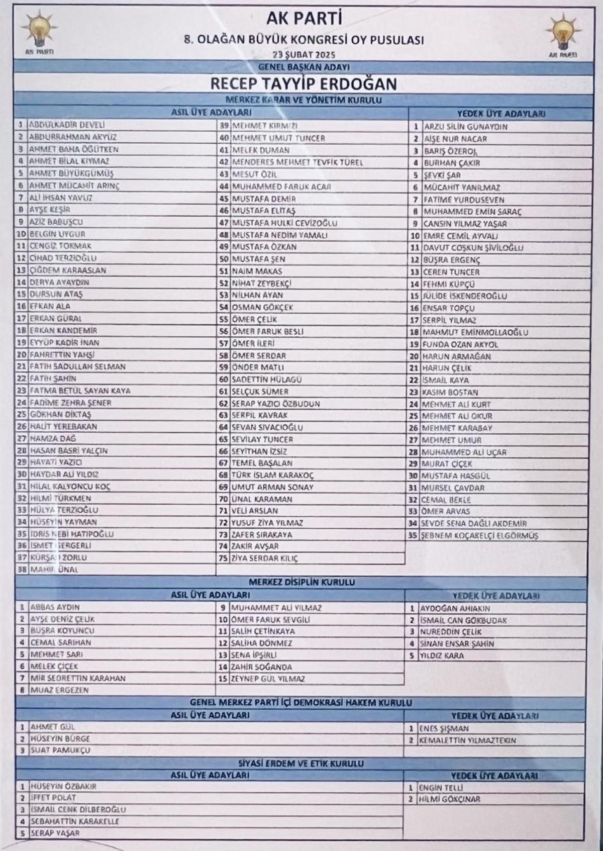 MKYK listesinde İYİ Parti’den transfer edilen Dursun Ataş, Seyithan İzsiz, İdris Nebi Hatipoğlu ve Kürşad Zorlu, Gelecek’ten transfer edilen Serap Yazıcı Özbudun ve Mustafa Nedim Yamalı,