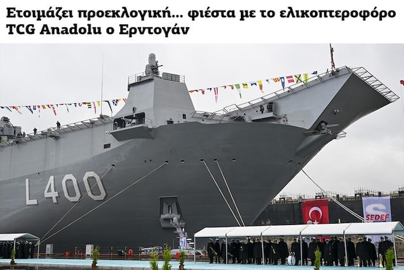 Savunma sanayiinin yeni gözdesi olan ve dünyanın ilk SİHA gemisi olan TCG Anadolu, Yunan medyasında övgüyle bahsedilirken, muhalif medyada ise yer almadı.