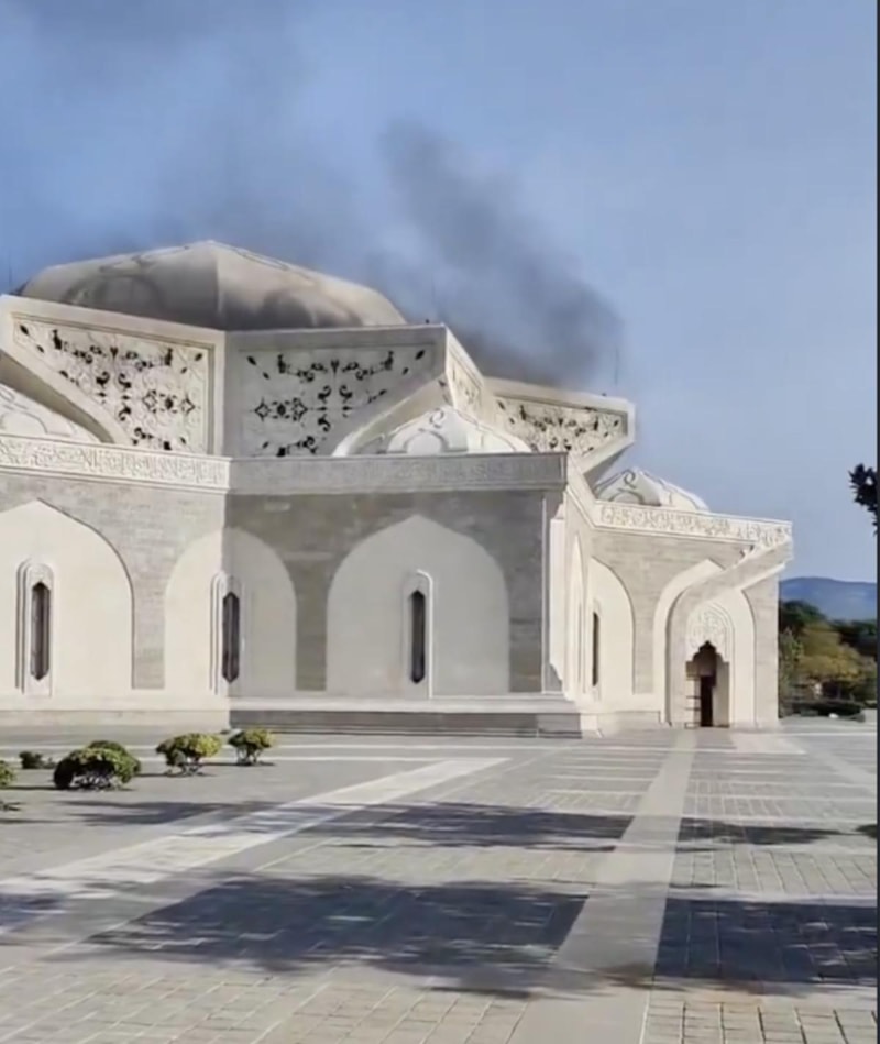 Mezara ulaşan muhalifler, önce mezarı çiğnedi sonra da anıtı ateşe verdi.
