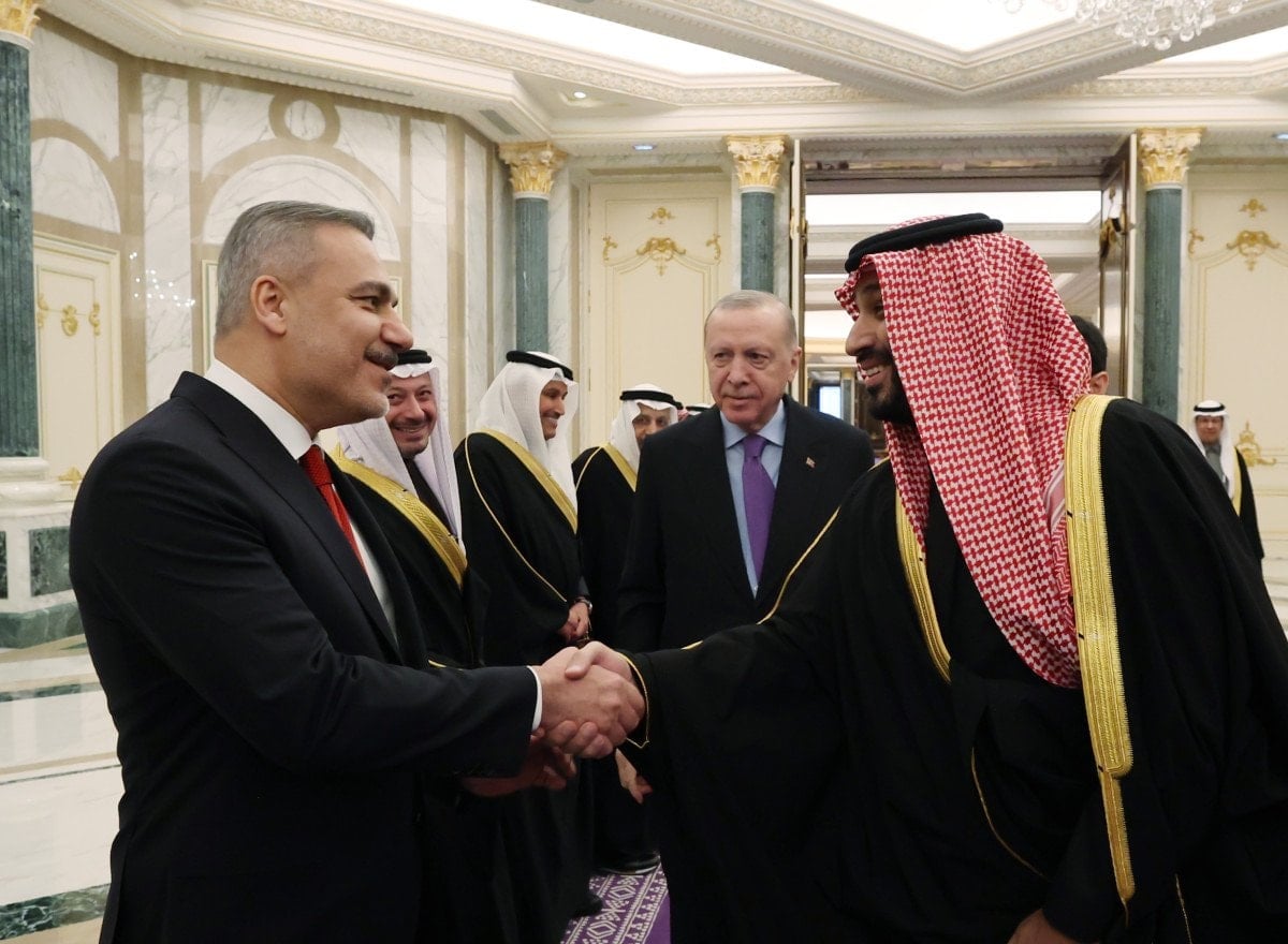 Cumhurbaşkanı Erdoğan’a Riyad temaslarında; Emine Erdoğan’ın yanı sıra Dışişleri Bakanı Hakan Fidan, Hazine ve Maliye Bakanı Mehmet Şimşek, Milli Savunma Bakanı Yaşar Güler ve çok sayıda bakan ile üst düzey yetkili eşlik etti.