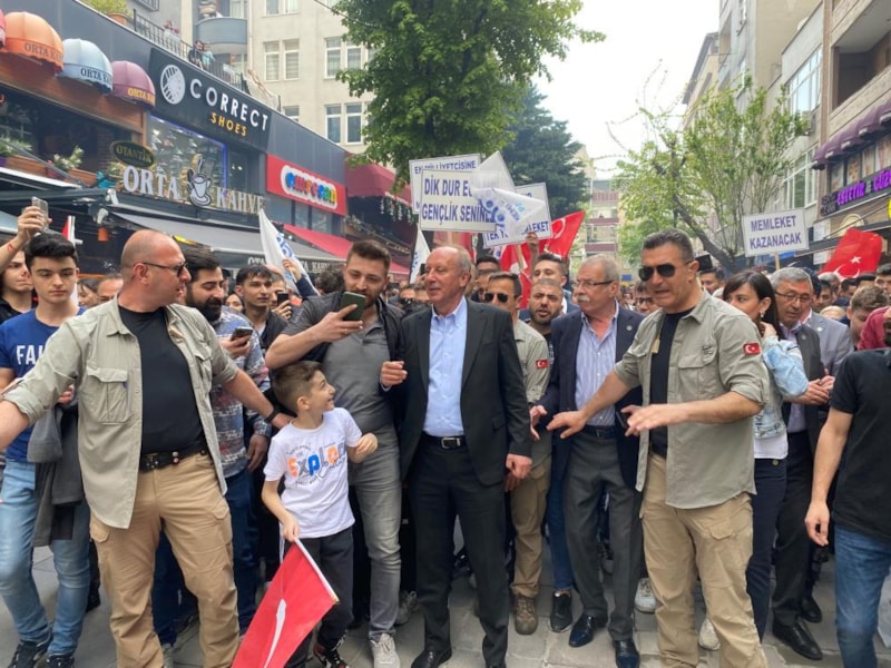 Gençler tarafından karşılanan İnce, esnafı ziyaret etti.
