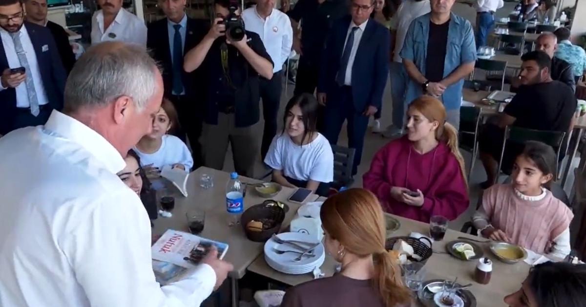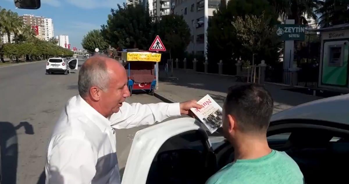 Buradaki vatandaşlarla 100. yılı kutlayan Muharrem İnce'nin yanında Atatürk'ün eseri Nutuk'u taşıdığı görüldü.