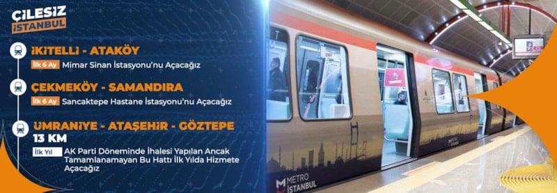 - 13 km’lik AK Parti döneminde ihalesi yapılan ancak tamamlanamayan Ümraniye-Ataşehir-Göztepe Metro hattı