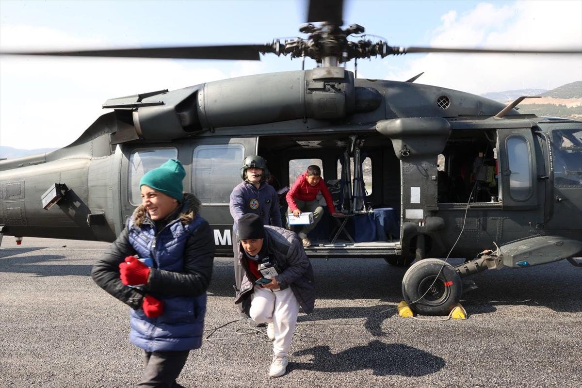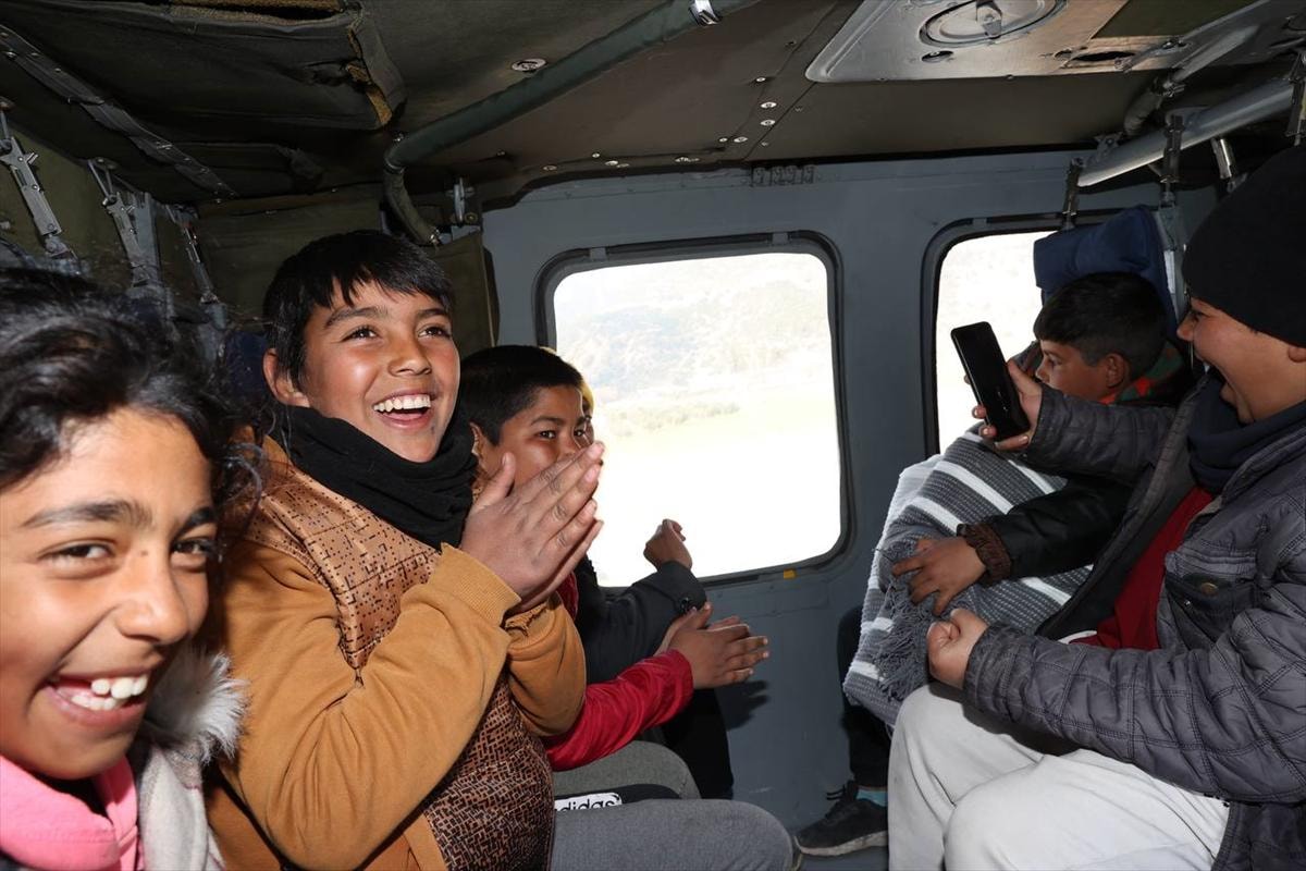 Kurum, isteklerini geri çevirmediği çocukları, alan incelemeleri için kullandığı Jandarma Genel Komutanlığına ait helikoptere bindirdi.