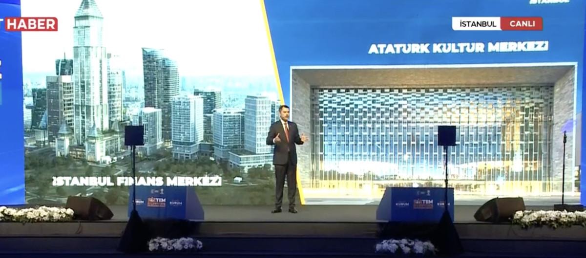 Slayt gösterisinde, "Yalnızca çözüme odaklanan bir vizyondur Siztem İstanbul. Kentsel dönüşümle risksiz İstanbul. İstanbul'da riskli yapı kalmayıncaya kadar çalışacağız. Biz hazırız, İstanbul hazır, Türkiye hazır..." sözleri yer aldı.