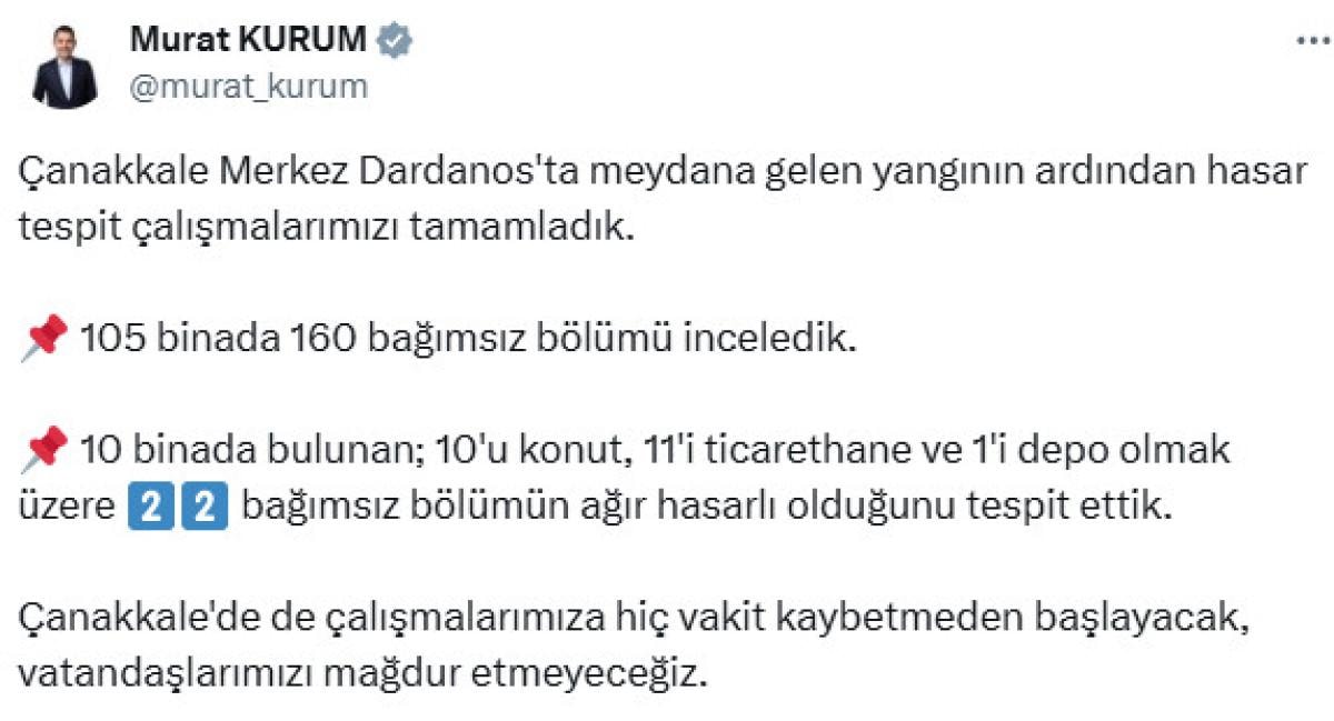 Çanakkale'de de çalışmalarımıza hiç vakit kaybetmeden başlayacak, vatandaşlarımızı mağdur etmeyeceğiz.