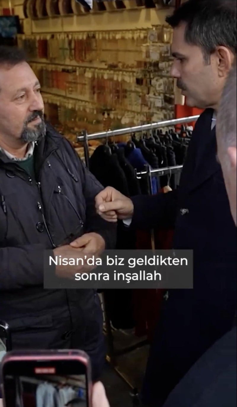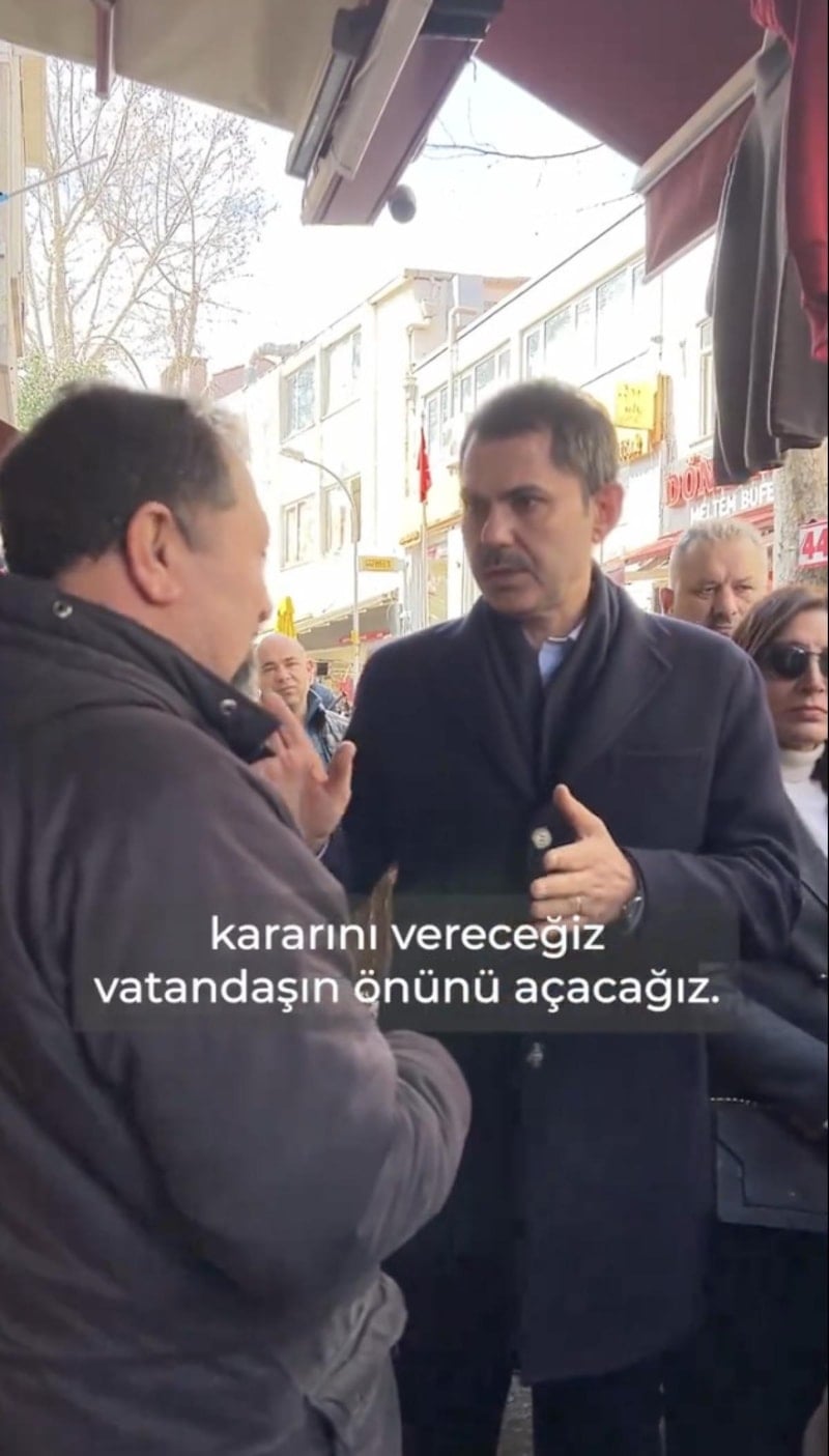 Murat Kurum, vatandaşla arasında geçen bu diyaloğu ise "Her gittiğimiz yerde vatandaşımız bize kentsel dönüşümü soruyor. Artık riskli konutlarda çaresizce beklemek istemiyor. Onlar da biliyor ki; deprem algı dinlemez! Nisan’da başlıyoruz. Deprem kapıyı çalmadan, her şey altüst olmadan İstanbul kazanacak." sözleriyle paylaştı.